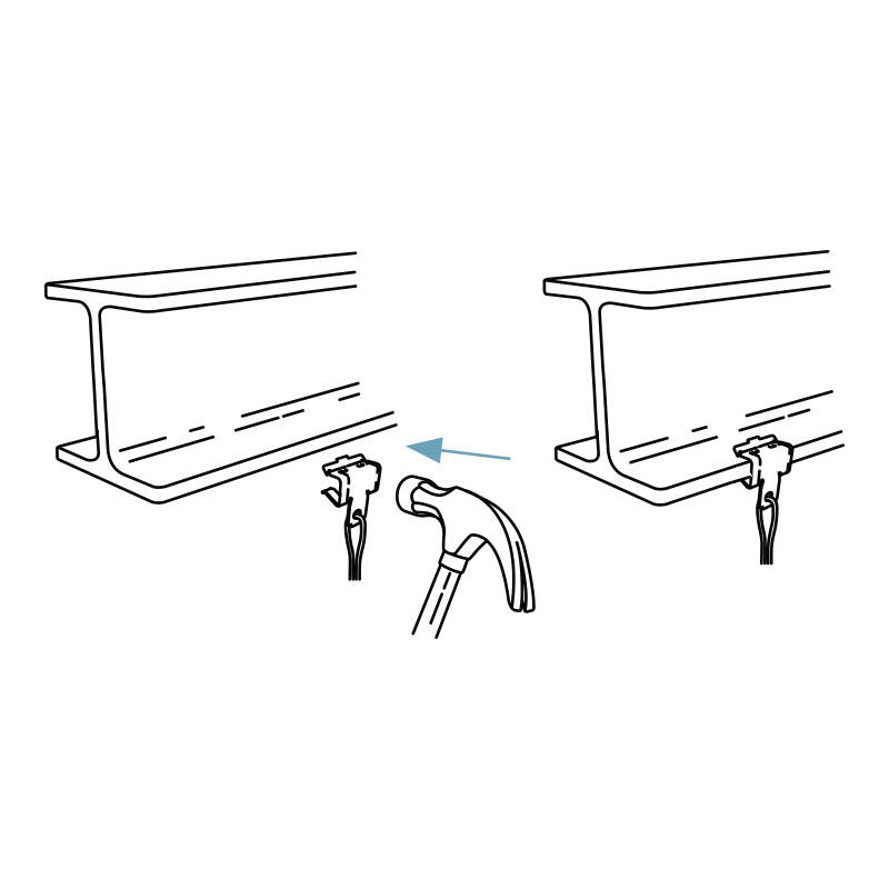 The Beam Clip provided by Mustang Systems is ideal with hook end fixing and accomodates a wide variety of flange thickness.