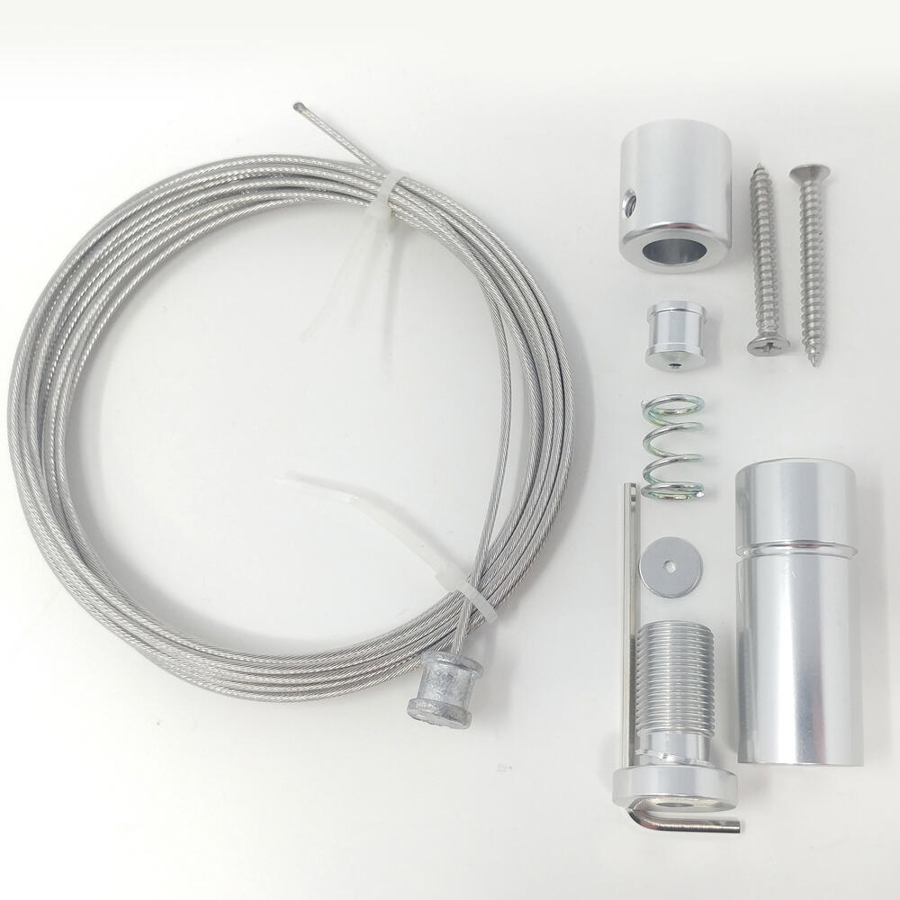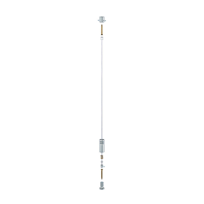 The Floor/Ceiling Cable Kit for suspended display cable systems is made of colorless clear anodized aluminum. These kits are used to vertically suspend & display many items.