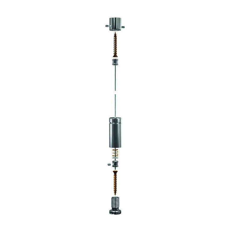 The Floor/Ceiling Cable Kit for suspended display cable systems is made of colorless clear anodized aluminum. These kits are used to vertically suspend & display many items.