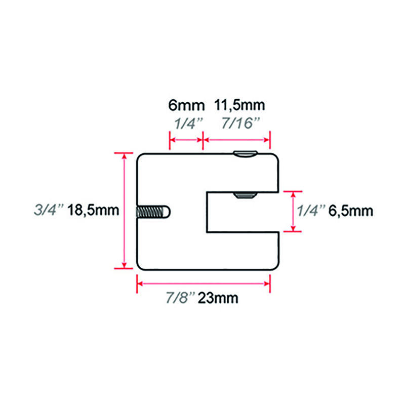 The Single Panel Support up to 10mm (3/8″) is made of colorless clear anodized aluminum.
