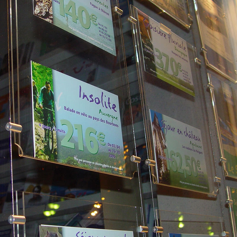 The Poster Holder Support up to 3mm (1/8″) is made of colorless clear anodized aluminum.