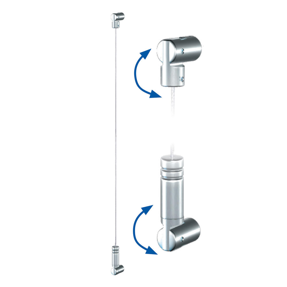 The Wall Mounted Cable Swivel Kit for suspended display cable systems is made of colorless clear anodized aluminum. These kits are used to vertically suspend & display many items.