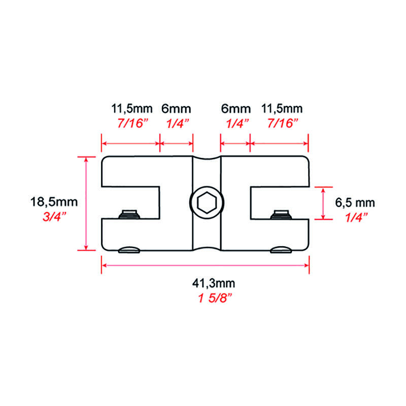 The Double Shelf Support up to 6mm (1/4″) is made of colorless clear anodized aluminum.