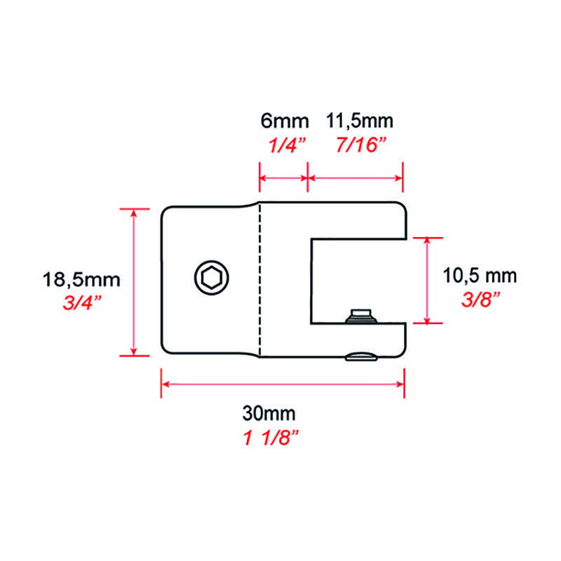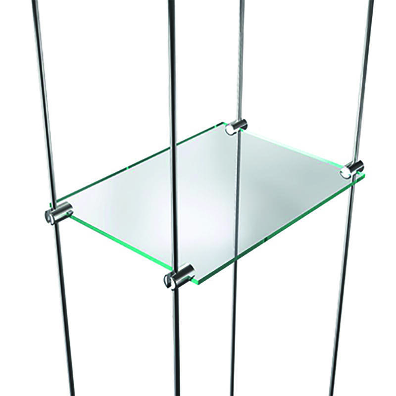The Single Shelf Support up to 10mm (3/8″) is made of colorless clear anodized aluminum.