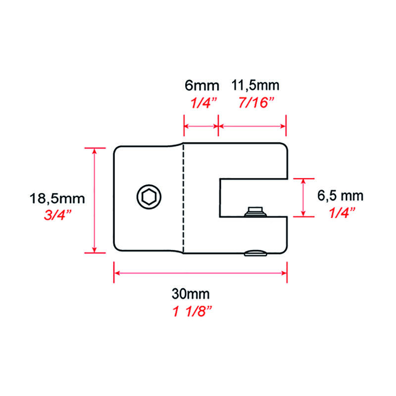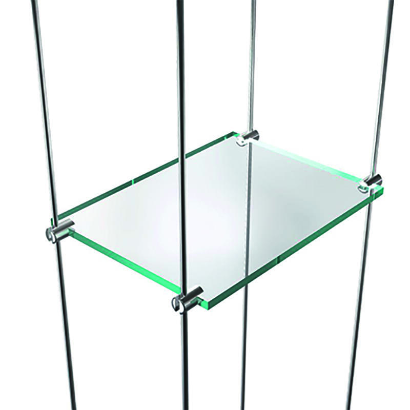 The Single Shelf Support up to 6mm (1/4″) is made of colorless clear anodized aluminum.