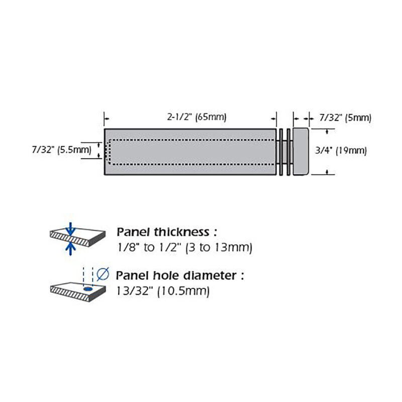 Les Entretoises Murales (Filetées) fournies par Mustang Systems sont fabriquées en aluminium avec une finition anodisé. La fixation murale vissée (entretoise) est livré avec 2 rondelles en silicone et idéale pour fixer un panneau de verre.