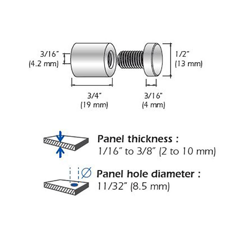 Entretoises Murales (Acrylique filetées) – ∅ 19mm (3/4″) Projection 19mm (3/4″)