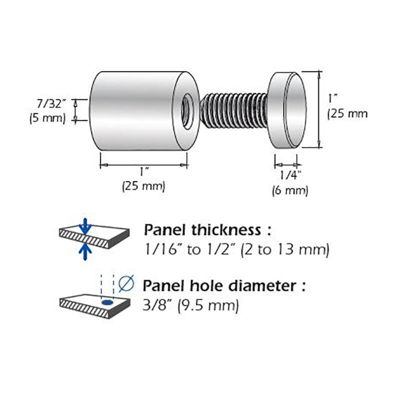 Les Entretoises Murales (Filetées) fournies par Mustang Systems sont fabriquées en aluminium avec une finition anodisé. La fixation murale vissée (entretoise) est livré avec 2 rondelles en silicone et idéale pour fixer un panneau de verre.
