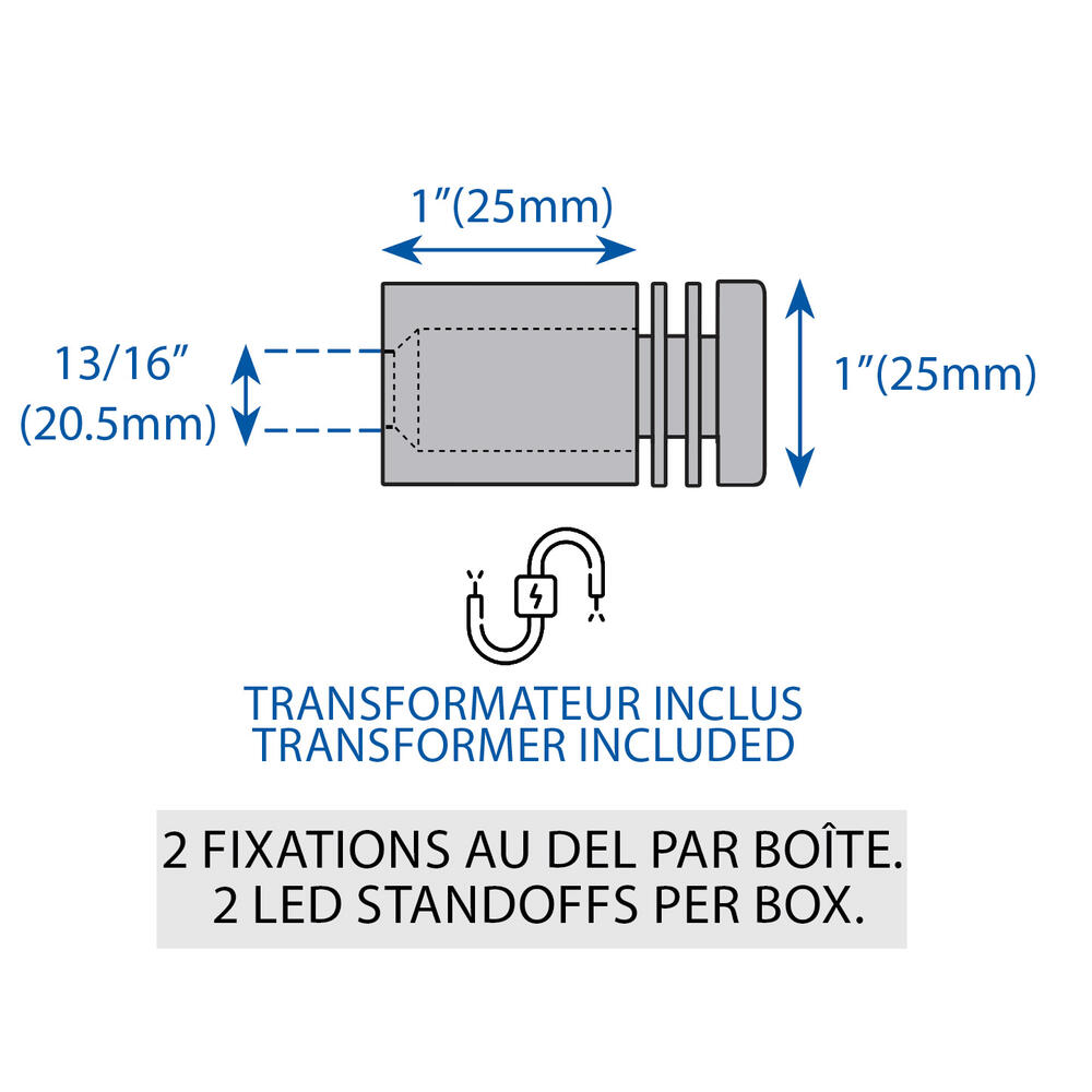 Entretoises Murales LED – ∅ 25mm (1″) Projection 25mm (1″) - Blanc