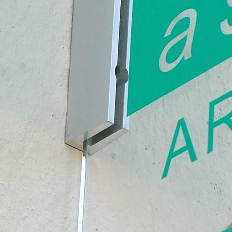 Les Fixations Murales (Pince Enseigne) Recto / Verso fournies par Mustang Systems sont fabriquées en aluminium avec une anodisation incolore.