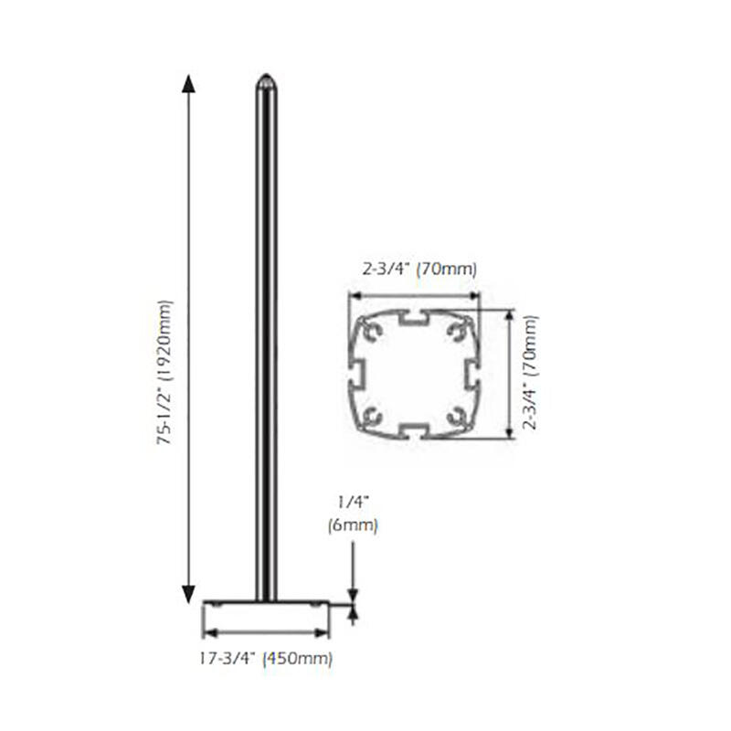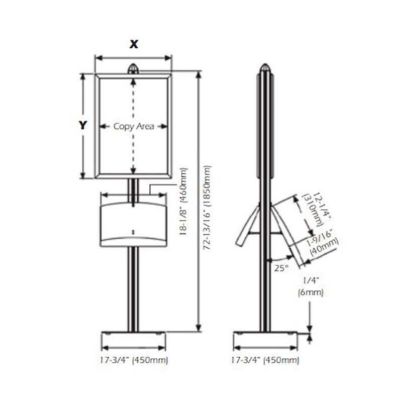 Dimension base: 17-3/4" x 17-3/4" (450mm x 450mm)